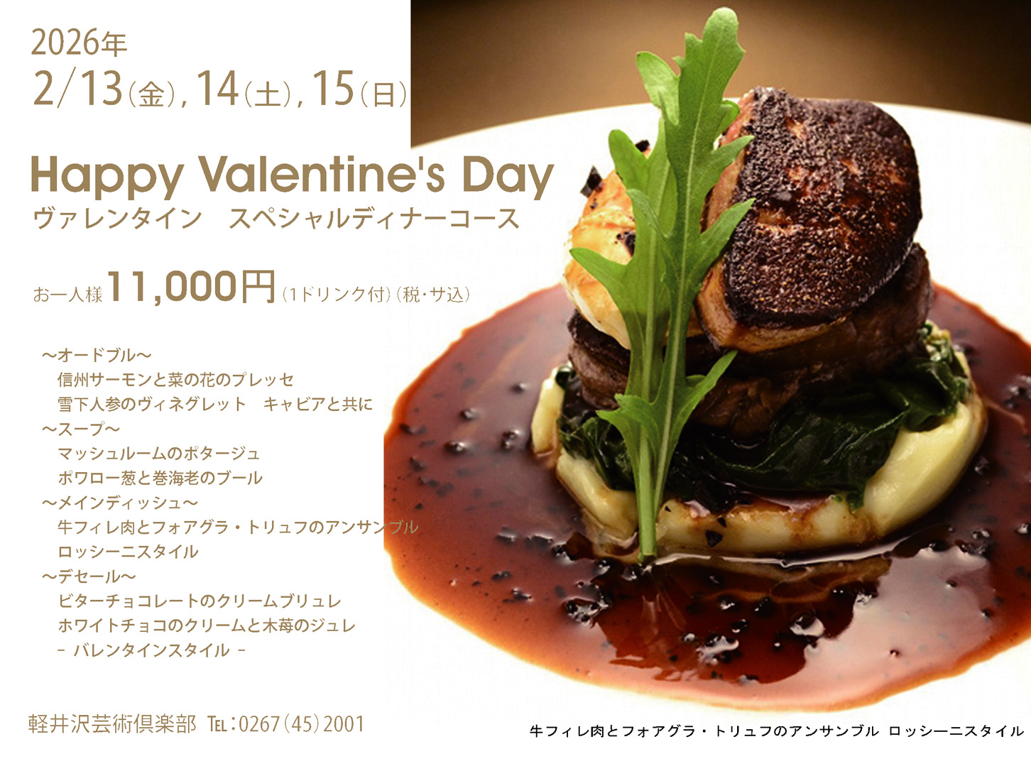 ※夕食付き宿泊プランにてご予約のお客様は、追加料金なく本ヴァレンタインコースをご用意いたします。